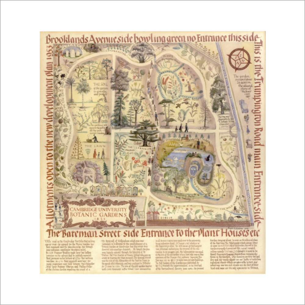 Map of Cambridge University Botanic Garden Art print โ Curating
