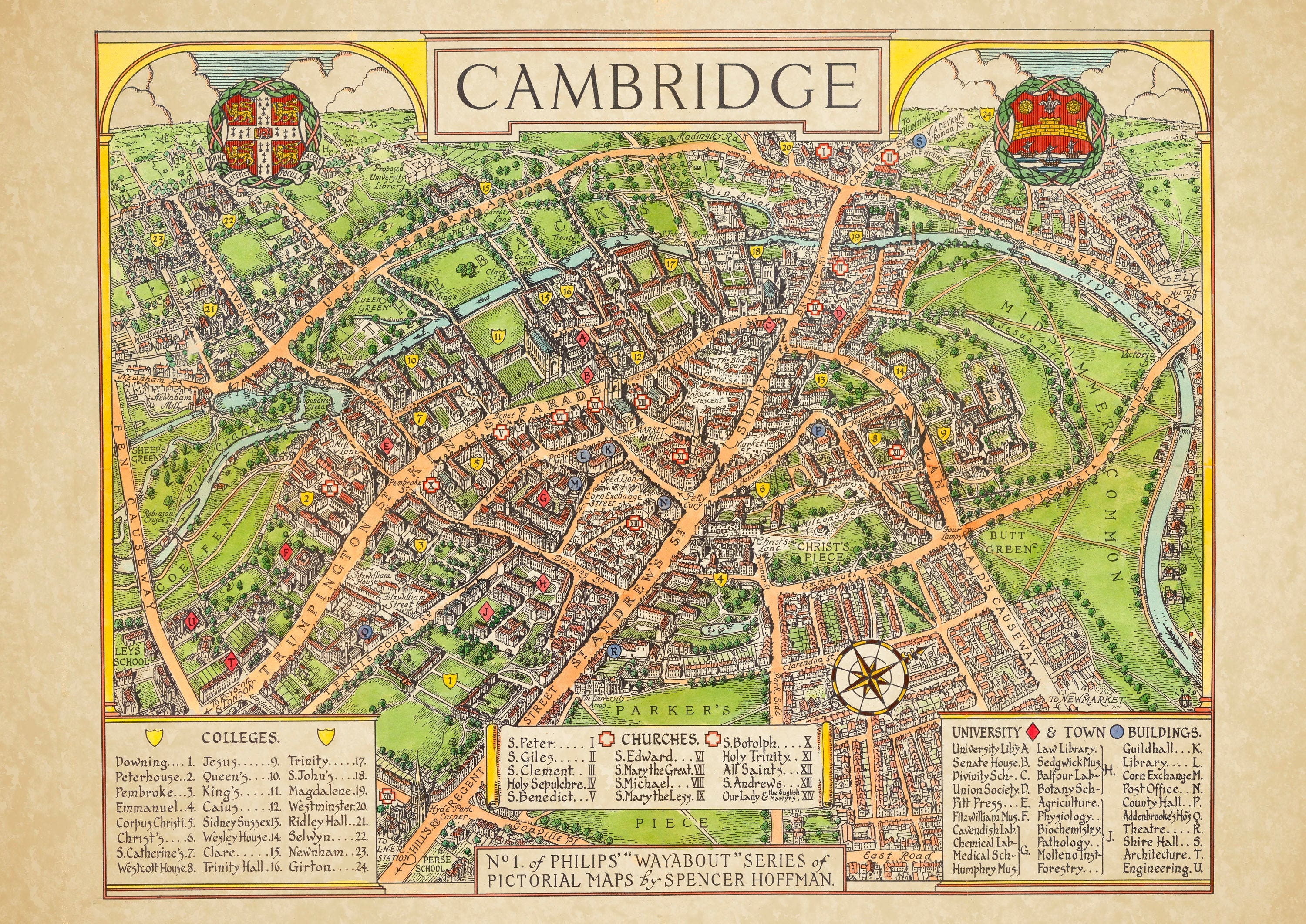 Cambridge in 1936 Old Pictorial Map Vintage Map Cambridge Etsy